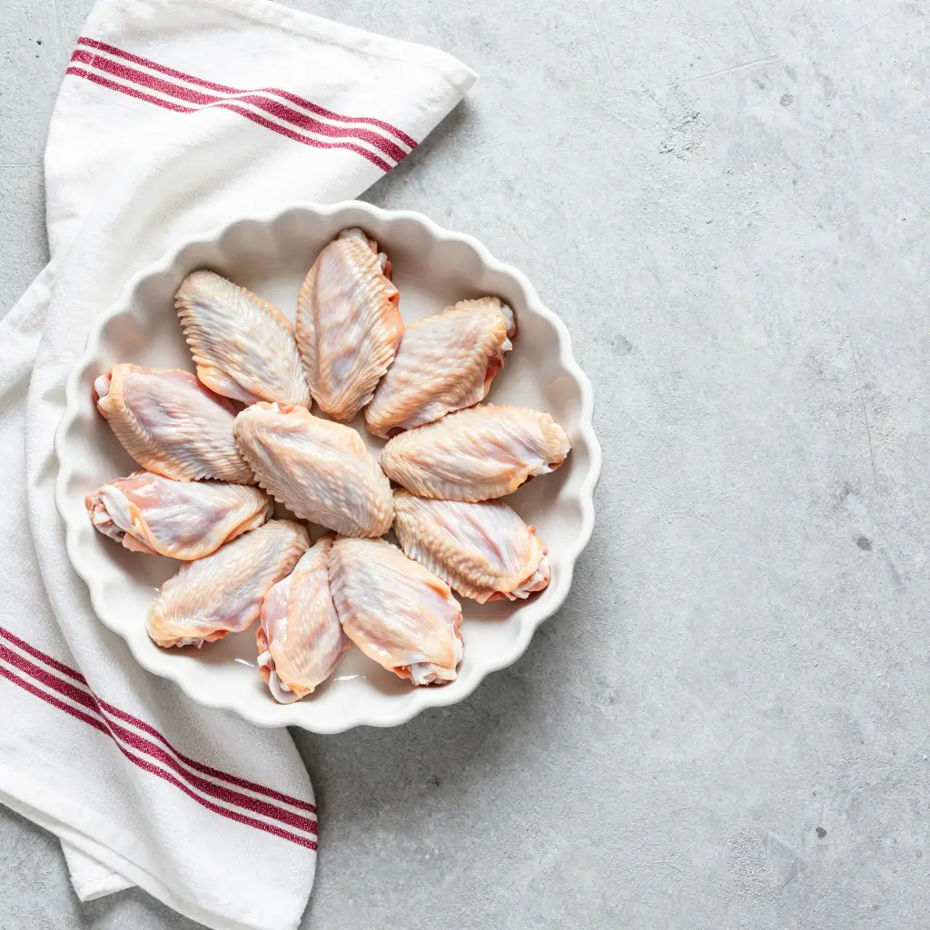 - Chicken Wings: 2 ½ to 3 pounds, split into drumettes and flats, with tips removed. (Patting them VERY dry is the first critical step to crispiness).