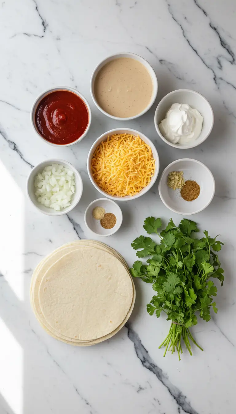 - 10-12 soft flour tortillas (8-inch): (They are more pliable and less likely to crack when rolling compared to corn, but use what you love).