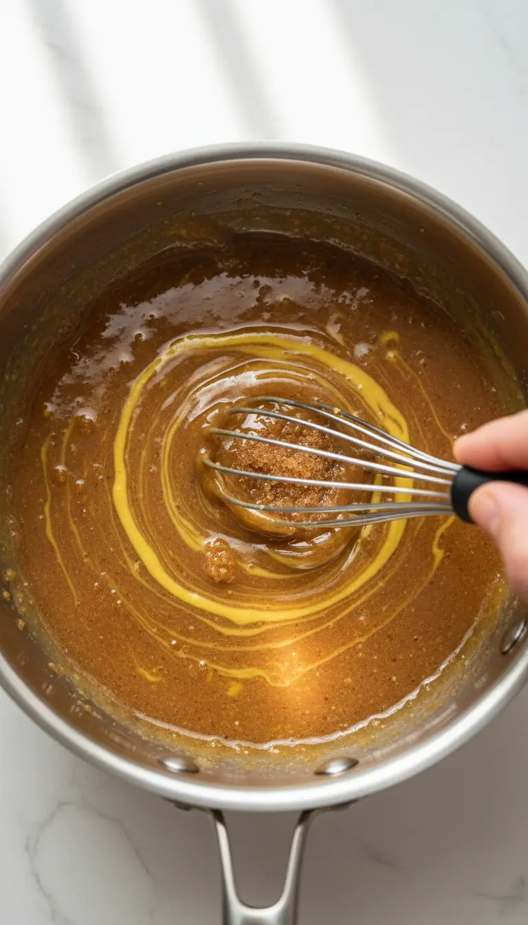 - In a small saucepan over medium heat, combine honey, brown sugar, Dijon mustard, apple cider vinegar, and ground cloves. Whisk constantly for 3-5 minutes until sugar dissolves and mixture is smooth and bubbly. Do not boil vigorously. Remove from heat and let cool slightly.