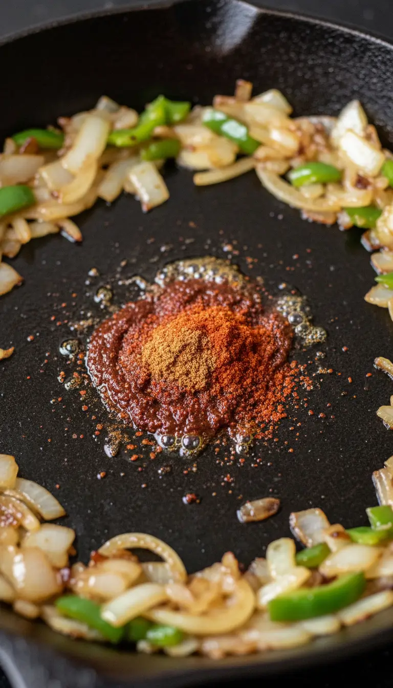 - Push vegetables to the side of the pan. Add cumin, remaining chili powder, and smoked paprika to the empty space. Toast the spices for 30 seconds until fragrant.