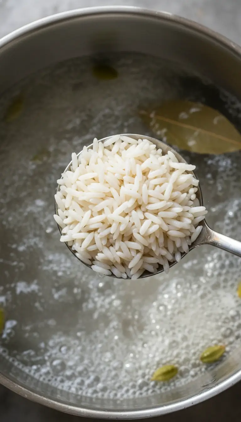 • Bold Reason 2 (Technique): Par-boiling the rice with whole spices ensures perfectly separate, long grains that finish cooking gently in the steam, preventing a mushy result.